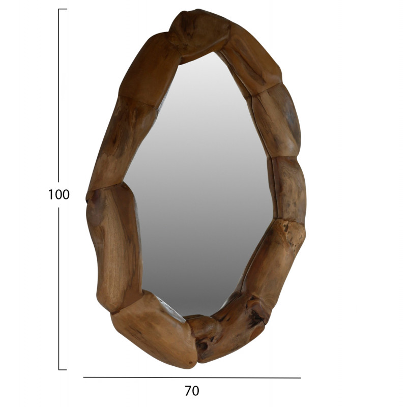 O καθρέπτης ΗΜ9359 είναι πραγματικά ένα ιδιαίτερο κομμάτι στην διακόσμηση του σπιτιού σας! Το design του είναι πρωτότυπο με περίπου οβάλ διάταξη αποτελούμενη από κομμάτια ξύλου TEAK, τα οποία στο κέντρο τους «φιλοξενούν» τον καθρέπτη. Τα ξύλα είναι στο φυσικό τους χρώμα και οι διαστάσεις όλης της κατασκευής είναι «πλούσιες».