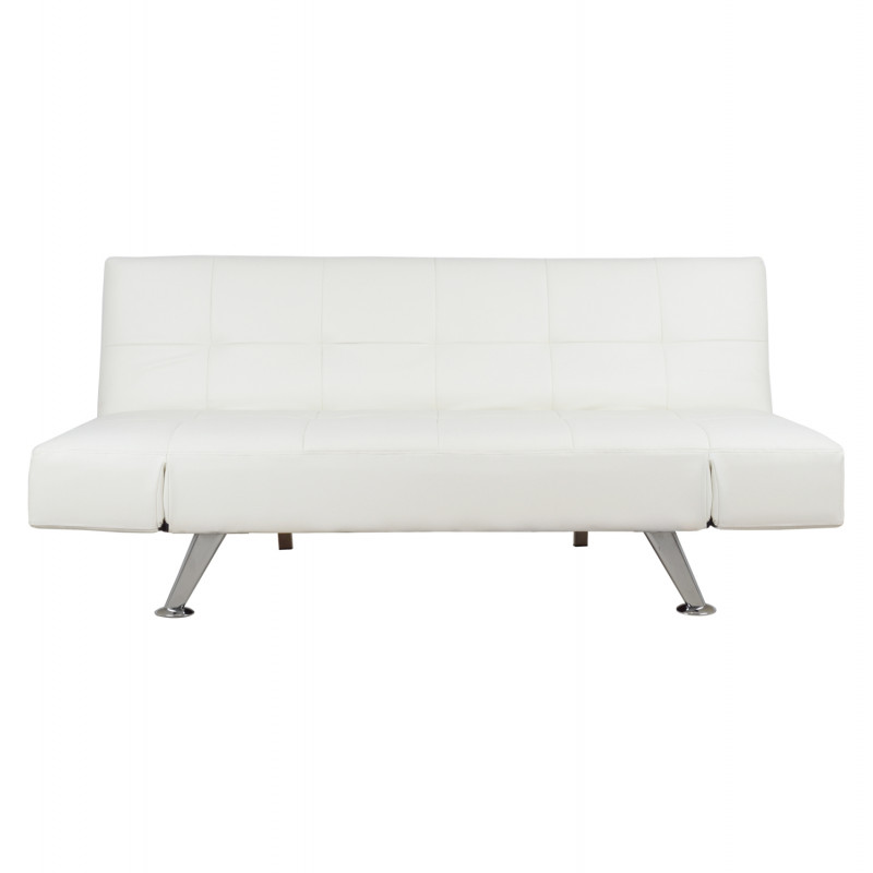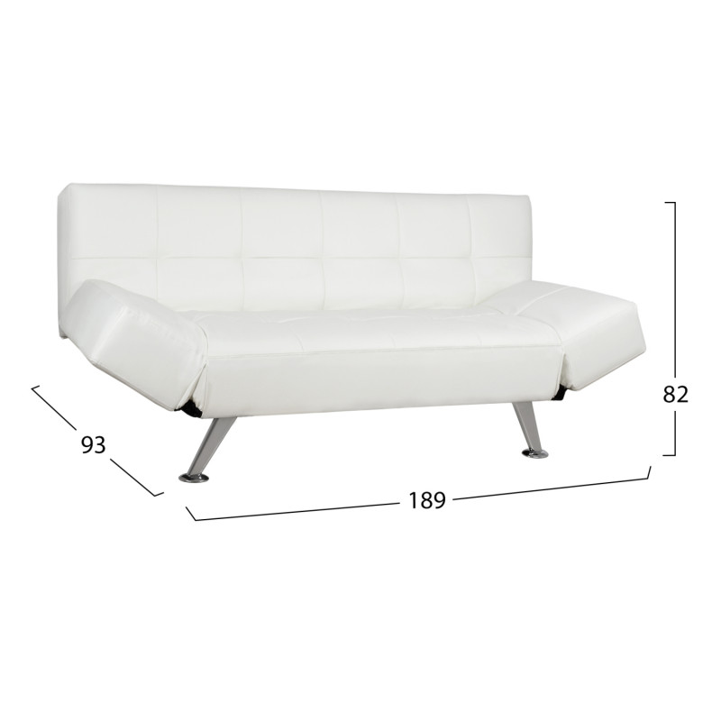 Καναπές κρεβάτι, επενδεδυμένος με τεχνόδερμα σε λευκή απόχρωση 189x93x82 εκ.