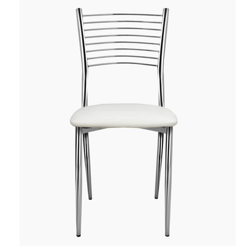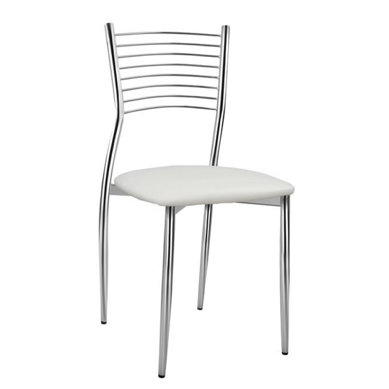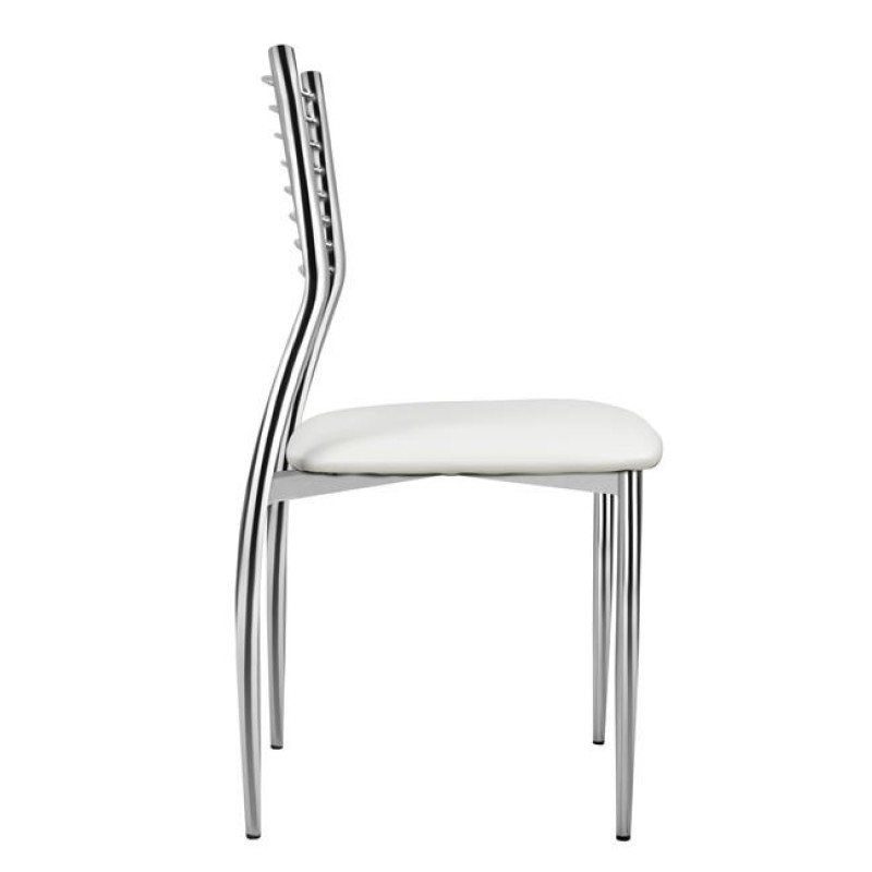 Καρέκλα τραπεζαρίας από σκελετό χρωμίου και επένδυση από δερματίνη σε άσπρο χρώμα.Συνδιάστε την με γυάλινο τραπέζι και φτιάξτε ένα υπέροχο σετ τραπεζαρίας για την κουζίνα σας.