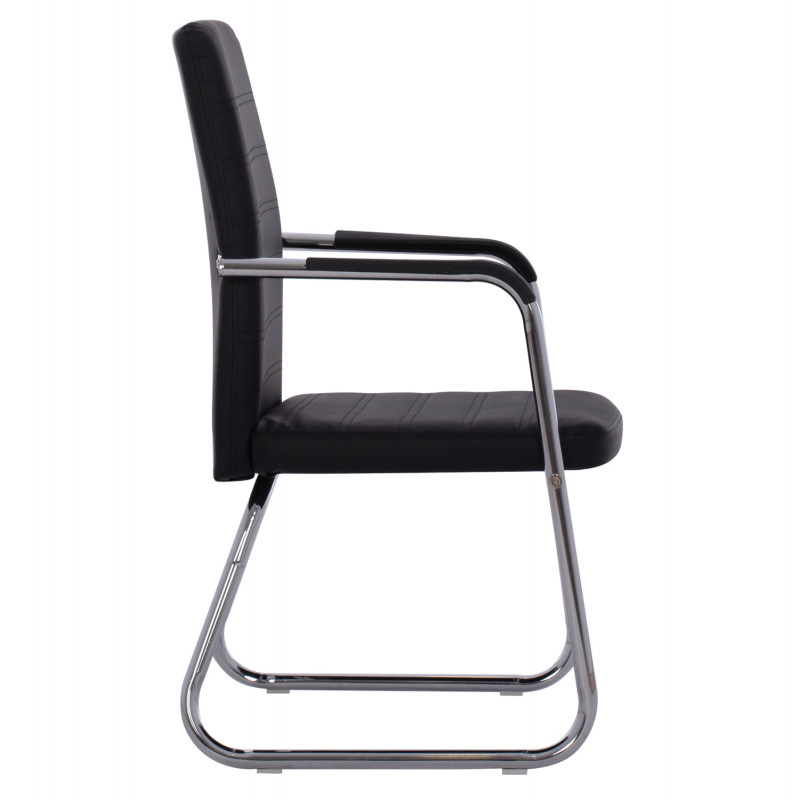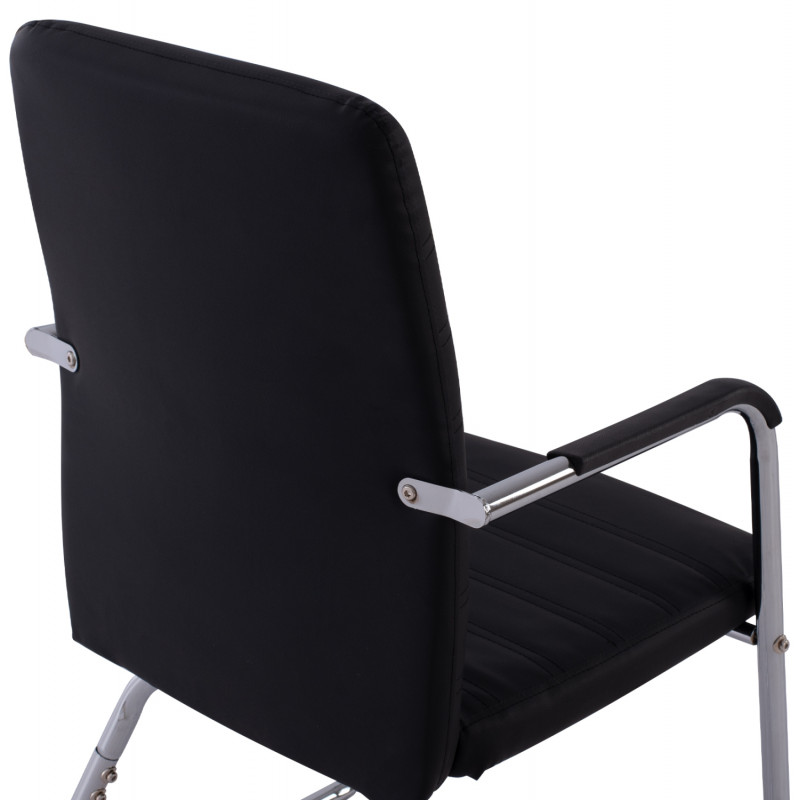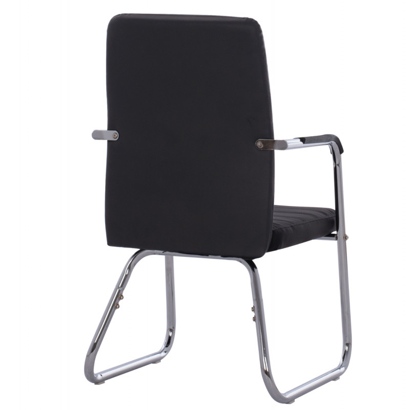 Κάντε τους επισκέπτες ή τους συνεργάτες σας να αισθανθούν άνετα με την καρέκλα DALEY. Πρόκειται για μια πολυθρόνα γραφείου συνεργασίας σε μαύρο χρώμα και λιτό σχεδιασμό αλλά σίγουρα όμορφο. Είναι χρωμιωμένη ενώ το κάθισμα και η πλάτη είναι ενωμένα. Τα μπράτσα είναι επίπεδα και αποτελούν συνέχεια του σκελετού βάσης δημιουργώντας μια πανέμορφη εικόνα, ενώ η επένδυσή της είναι ριγέ PU, τόσο στο κάθισμα, όσο και στην πλάτη. Ο σκελετός της καρέκλας έχει όμορφες καμπύλες ενώ τα μπράτσα έχουν επένδυση πολυκαρβονική για πιο ευχάριστη υφή.