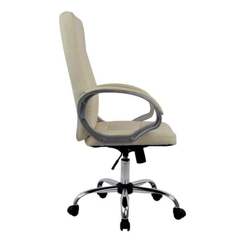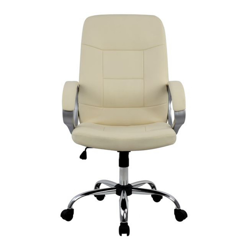 Διευθυντική καρέκλα γραφείου “IVERN” σε εκρού χρώμα. Μια «πλούσια» καρέκλα γραφείου με ψηλά μπράτσα με κλίση και επενδυμένα με μια λεπτή στρώση αφρολέξ σε PU δέρμα. Η πλάτη είναι ψηλή με πλούσια στρώση από αφρώδη υλικά για άνεση κατά την χρήση και υποστηρίζει ολόκληρο τον κορμό σας, ενώ είναι επενδυμένη με υψηλής ποιότητας PU δέρμα , όπως επίσης και το φαρδύ και αναπαυτικό κάθισμα με την αναπαυτική επιφάνεια. Η βάση είναι χρωμιωμένη σε σχήμα «αστέρι».