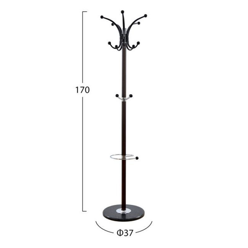 Ο καλόγερος SHIA είναι ένα έπιπλο χρησιμότατο για κάθε χώρο. Είναι μεταλλικός με καλαίσθητη κολώνα και στρογγυλή μαρμάρινη βάση, που παρέχει το απαραίτητο χαμηλό κέντρο βάρους. Παρέχει 14 θέσεις κρέμασης, με καλύμματα στις άκρες καθώς και ειδική θέση για ομπρέλες με την μορφή «δαχτυλιδιού» σε χρώμα χρωμίου. Πρόκειται για ένα πανέμορφο κομμάτι που θα ομορφύνει την είσοδο του σπιτιού ή του επαγγελματικού σας χώρου.