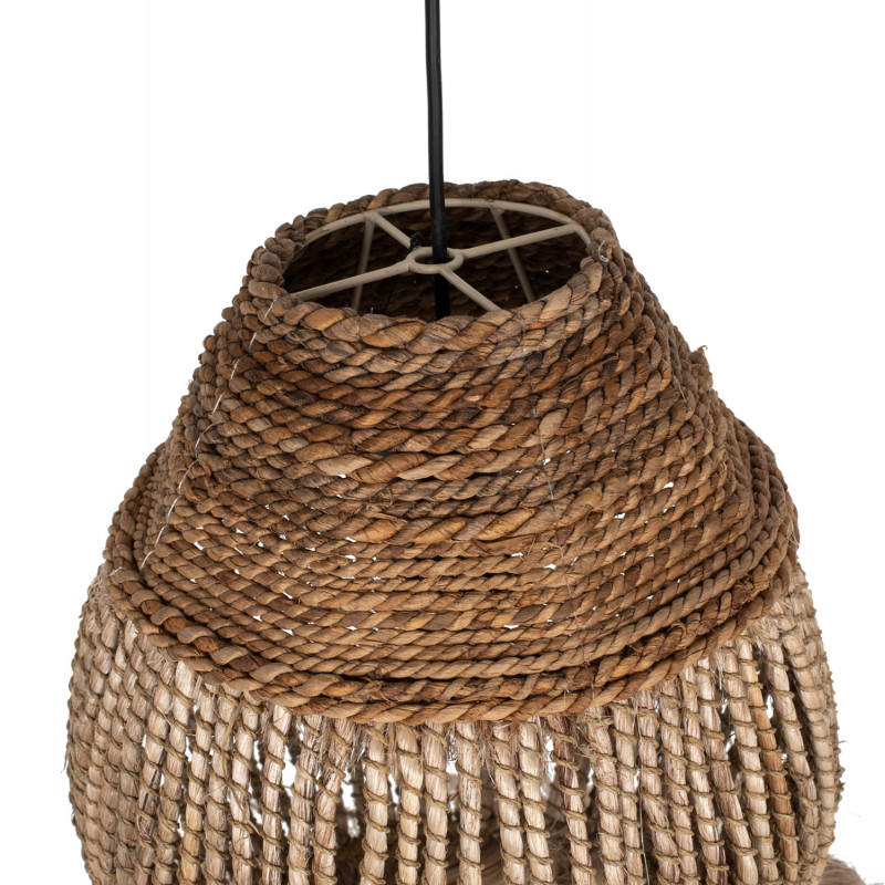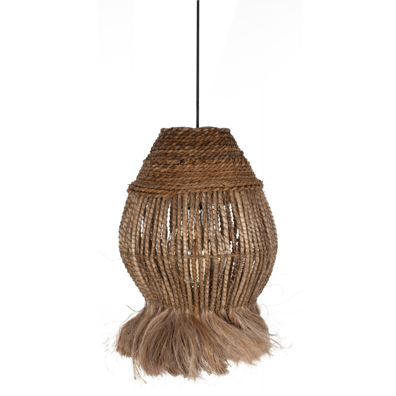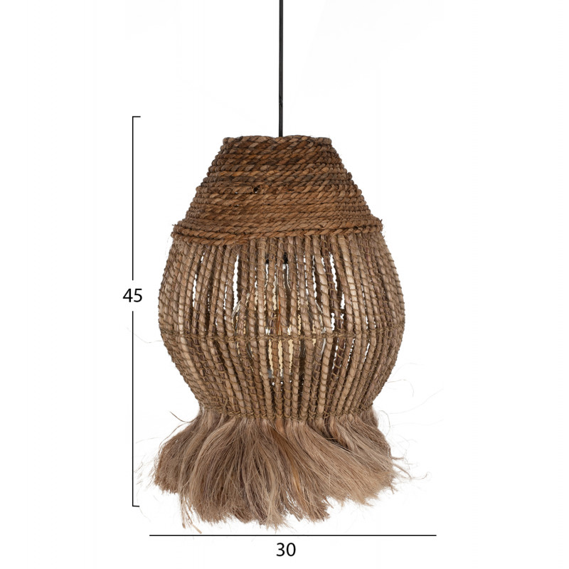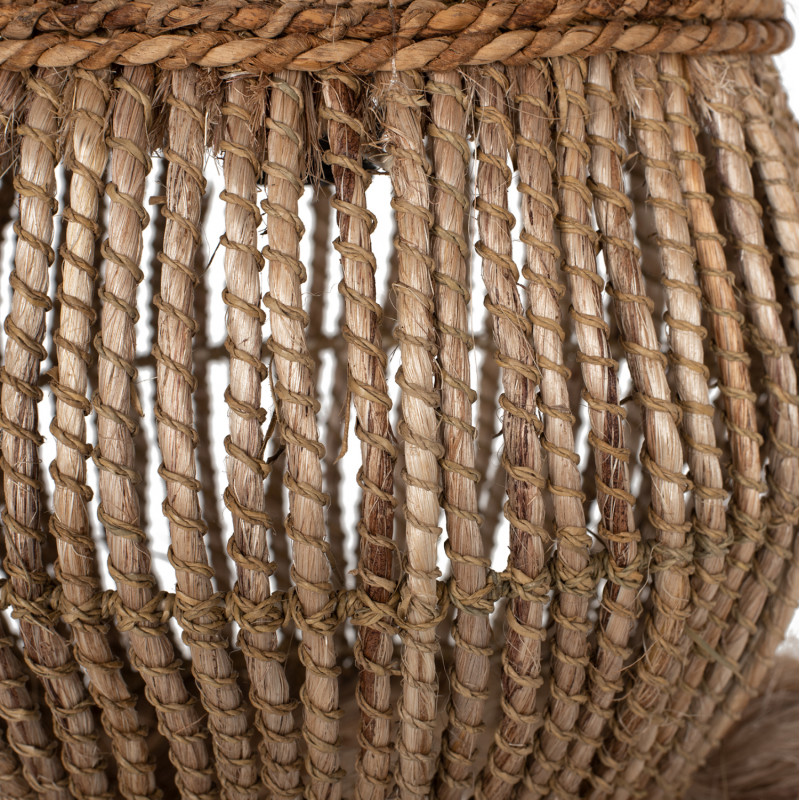 Hm7772- Kρεμαστό φωτιστικό---- Αν επιθυμείτε να διακοσμήσετε το χώρο σας με ένα φωτιστικό σε boho στυλ, αυτό είναι μια χαρακτηριστική επιλογή. Είναι ένα μονόφωτο φωτιστικό με «καπέλο» σε κυλινδρικό σχήμα σαν «φαναράκι» φτιαγμένο από ίνες κάνναβης Μανίλας σε φυσικό χρώμα. Στο κάτω μέρος η κατασκευή καταλήγει σε κρόσια από τις ίδιες ίνες, δίνοντας μια άλλη αισθητική στο φωτιστικό.