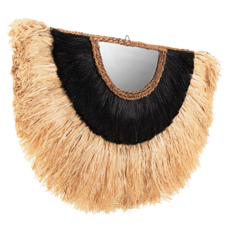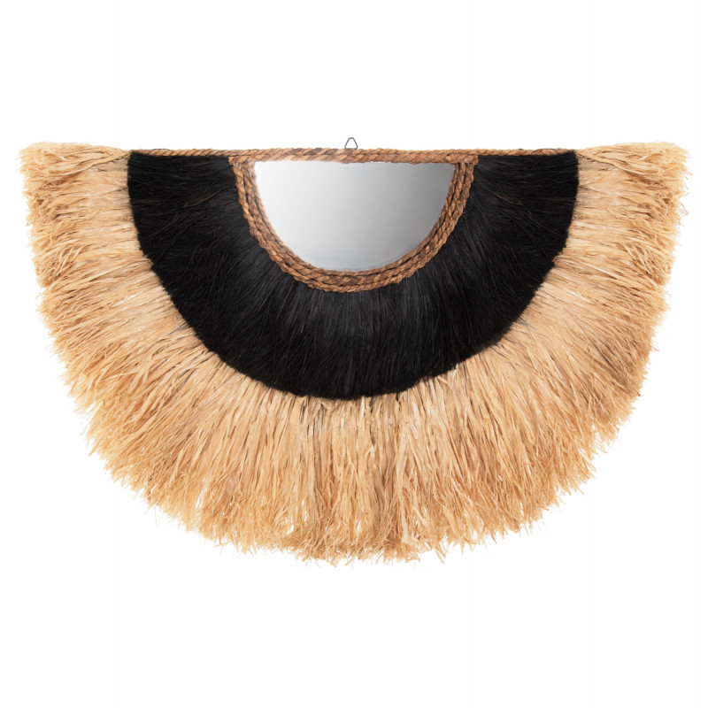Ο ημικυκλικός καθρέπτης ΗΜ7799 είναι πραγματικά ένα εντυπωσιακό κομμάτι στην διακόσμηση του χώρου σας! Το design του είναι όμορφο και λιτό με πλαίσιο από ίνες σιζάλ σε φυσικό χρώμα και ίνες κάνναβης Μανίλας σε μαύρο χρώμα. Ένας διακοσμητικός καθρέπτης που θα δώσει μια άλλη αισθητική στον χώρο σας και ταυτόχρονα θα αποτελέσει ένα όμορφο εστιακό σημείο αναφοράς.