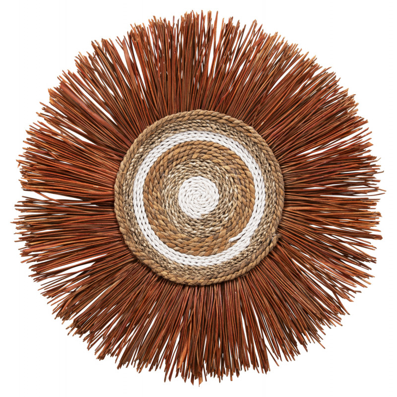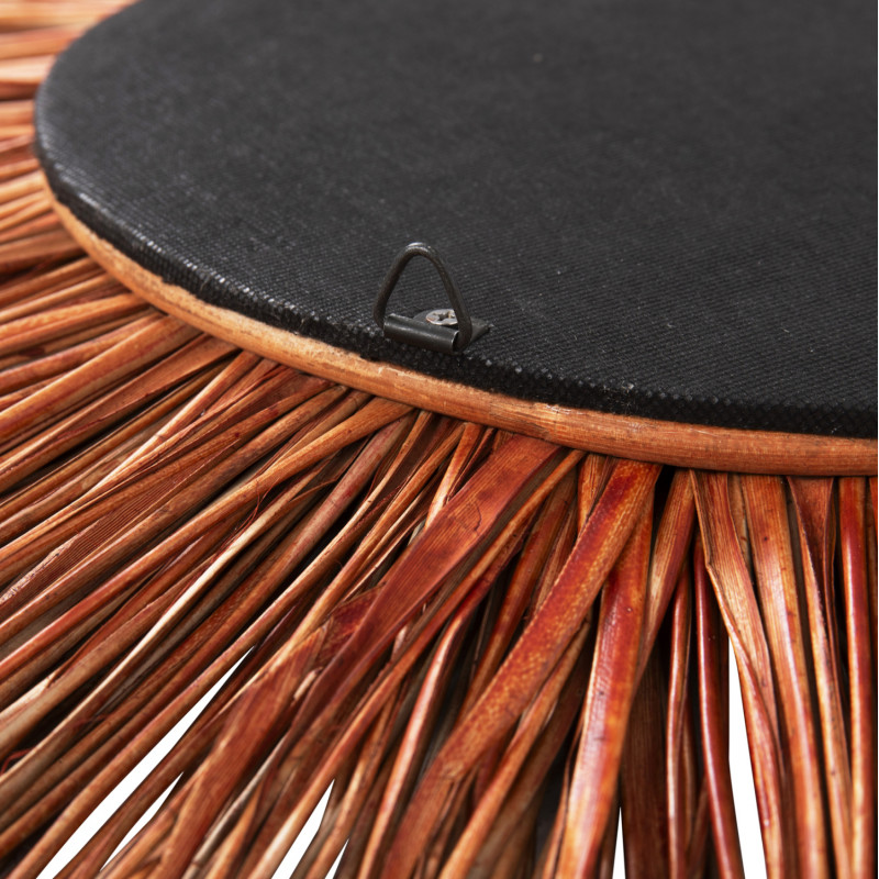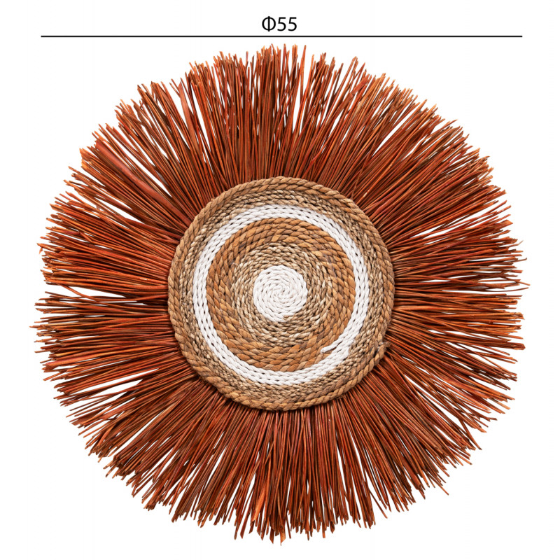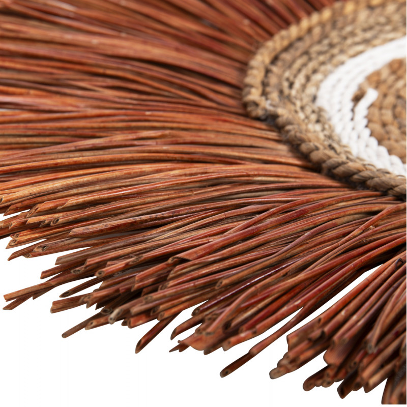 Το διακοσμητικό αυτό είναι κατασκευασμένο από κομμάτια καλαμιάς με ίνες από φλοιούς μπανάνας στο εμπρός μέρος.