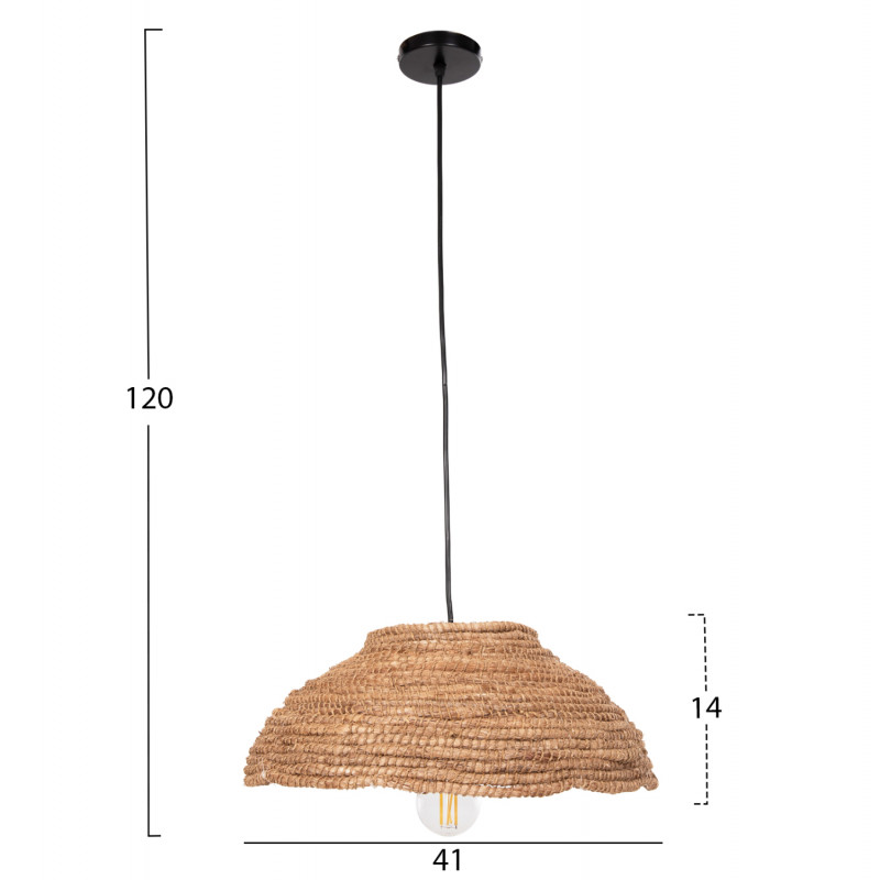 Hm7784- Kρεμαστό φωτιστικό---- Αν επιθυμείτε να διακοσμήσετε το χώρο σας με ένα φωτιστικό σε boho στυλ, αυτό είναι η πιο σωστή επιλογή. Είναι ένα μονόφωτο φωτιστικό με φαρδύ «καπέλο» σε ανοιχτό σχήμα και φυσικό χρώμα, φτιαγμένο από σκοινί από ίνες κάνναβης Μανίλας.