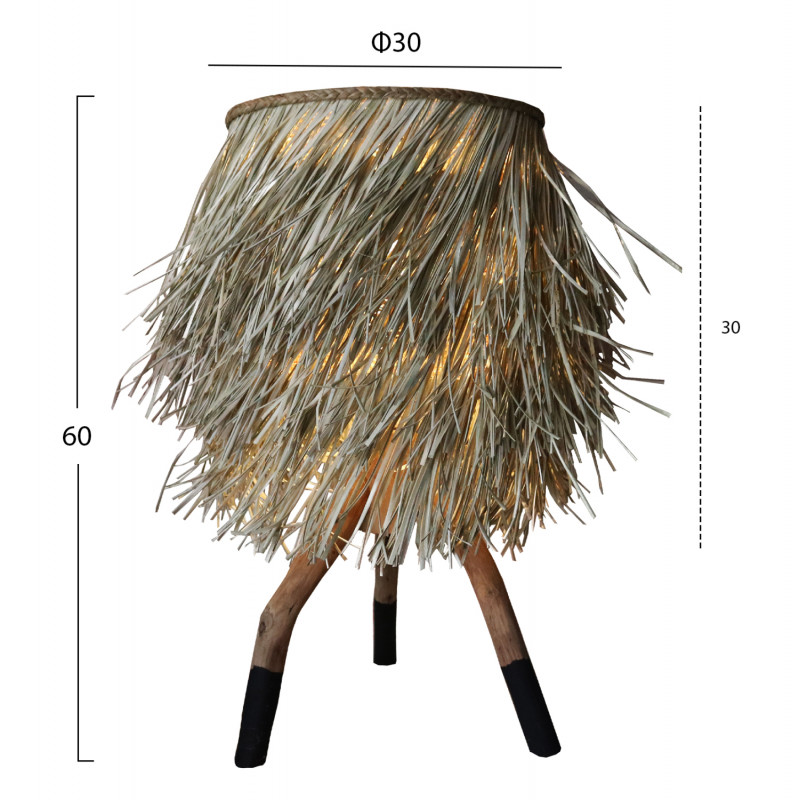 Επιτραπέζιο φωτιστικό ΗΜ7771 με πόδια από κλαδιά του δέντρου ΤΕΑΚ σε φυσικό χρώμα με μαύρα τελειώματα. Το κυλινδρικό «καπέλο» του φωτιστικού είναι σε φυσική απόχρωση από αποξηραμένα φύλλα θαλάσσιων φυτών. Ένα ξεχωριστό διακοσμητικό επιτραπέζιο φωτιστικό που θα δημιουργήσει την ατμόσφαιρα που πάντα φανταζόσασταν για τον χώρο σας, έτσι ώστε να φτιάξετε την δική σας γωνιά χαλάρωσης ή ακόμα και διακόσμησης. Διότι σε ένα τέτοιο φωτιστικό το φως είναι το τελευταίο πράγμα που θα σας απασχολήσει!