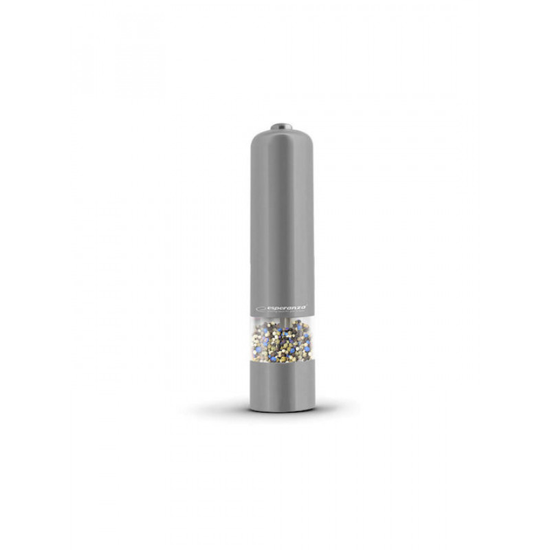 Ηλεκτρικός μύλος άλεσης μπαχαρικών με LED φωτισμό σε γκρι χρώμα. Είναι κατασκευασμένος από ανοξείδωτο χάλυβα και διαθέτει διαφανές δοχείο ώστε να ελέγχετε την ποσότητα των μπαχαρικών που απομένουν. Εύκολος στη χρήση καθώς αλέθει με το πάτημα ενός κουμπιού. και διαθέτει ρυθμιζόμενο πάχος τριψίματος των κόκκων.