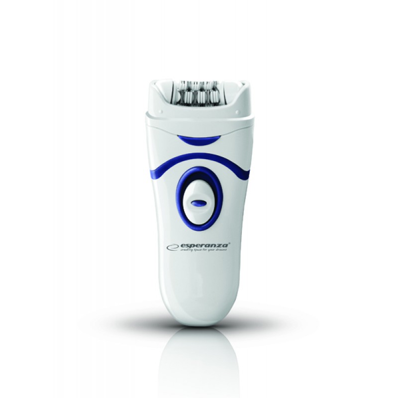 Αποτριχωτική μηχανή epilator της εταιρείας Esperanza, κατάλληλη για χρήση στο σώμα. Σχεδιασμένη με ειδικές περιστρεφόμενες ηλεκτρικές τσιμπίδες μεγάλης ταχύτητας, αφαιρεί από τον θύλακα τις λεπτές ή χοντρές τρίχες κάθε μήκους, προσφέροντας μακροπρόθεσμα αποτελέσματα και απαλότητα στην επιδερμίδα. Λειτουργεί με μπαταρίες.