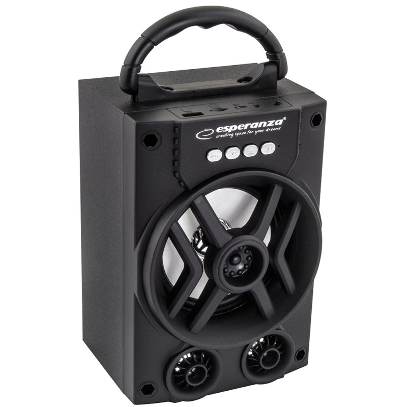 Το φορητό bluetooth ηχείο της Esperanza με ισχύ 5 watt, είναι full range και μπορεί να αναπαράγει οποιοδήποτε μουσικό κομμάτι με περιορισμένη όμως απόδοση στο μπάσο, καθώς δεν διαθέτει subwoofer. Επιπλέον διαθέτει ραδιόφωνο για να ακούτε τους αγαπημένους σταθμούς, hands free για να μιλάτε άνετα μέσω της ανοιχτής ακρόασης και δυνατότητα φόρτισης μέσω usb, για να μπορείτε εύκολα να το φορτίσετε με powerbank. Τέλος το ηχείο έχει ενσωματωμένα φώτα led για να δημιουργήσετε ατμοσφαιρικό φωτισμό στο χώρο, κατά την αναπαραγωγή της μουσικής.